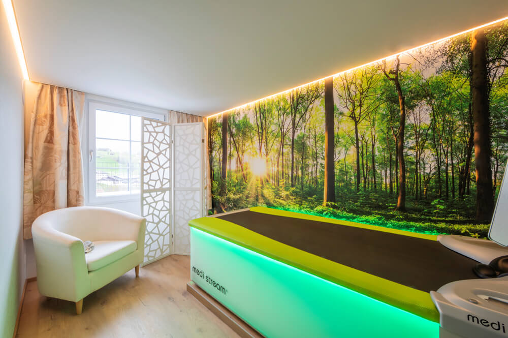 Die kombinierte Wirkung der lebensspendenden Elemente Wasser und Wärme der medi stream® Überwasser-Massage-Therapie beschert wohltuende Entspannung: